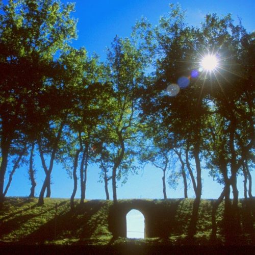 Le luci dei riflettori illuminano subito lassù, verso il punto più alto della collina. Ed eccolo, il Serbatoio dell’Acquedotto: due grandi gallerie parallele che servivano per rifornire d’acqua tutta la città sottostante.