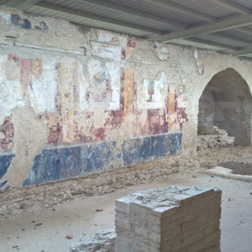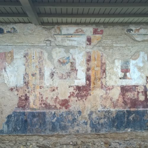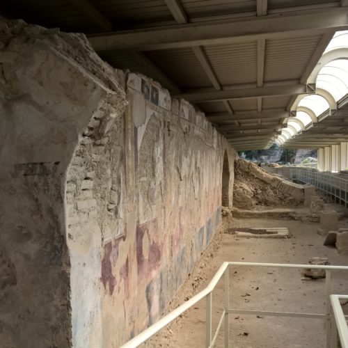 E quando sei li, convinto che queste bellezze valgano già il prezzo del biglietto, lo spettacolo ti sorprende ancora. Lo sguardo cade sulla maestosa area sacra: un tempio minore e un grande Tempio con criptoportico. Per un attimo puoi perderti tra gli affreschi che raccontano la propaganda augustea, i deliziosi riquadri con scene di animali, le maschere lunari.